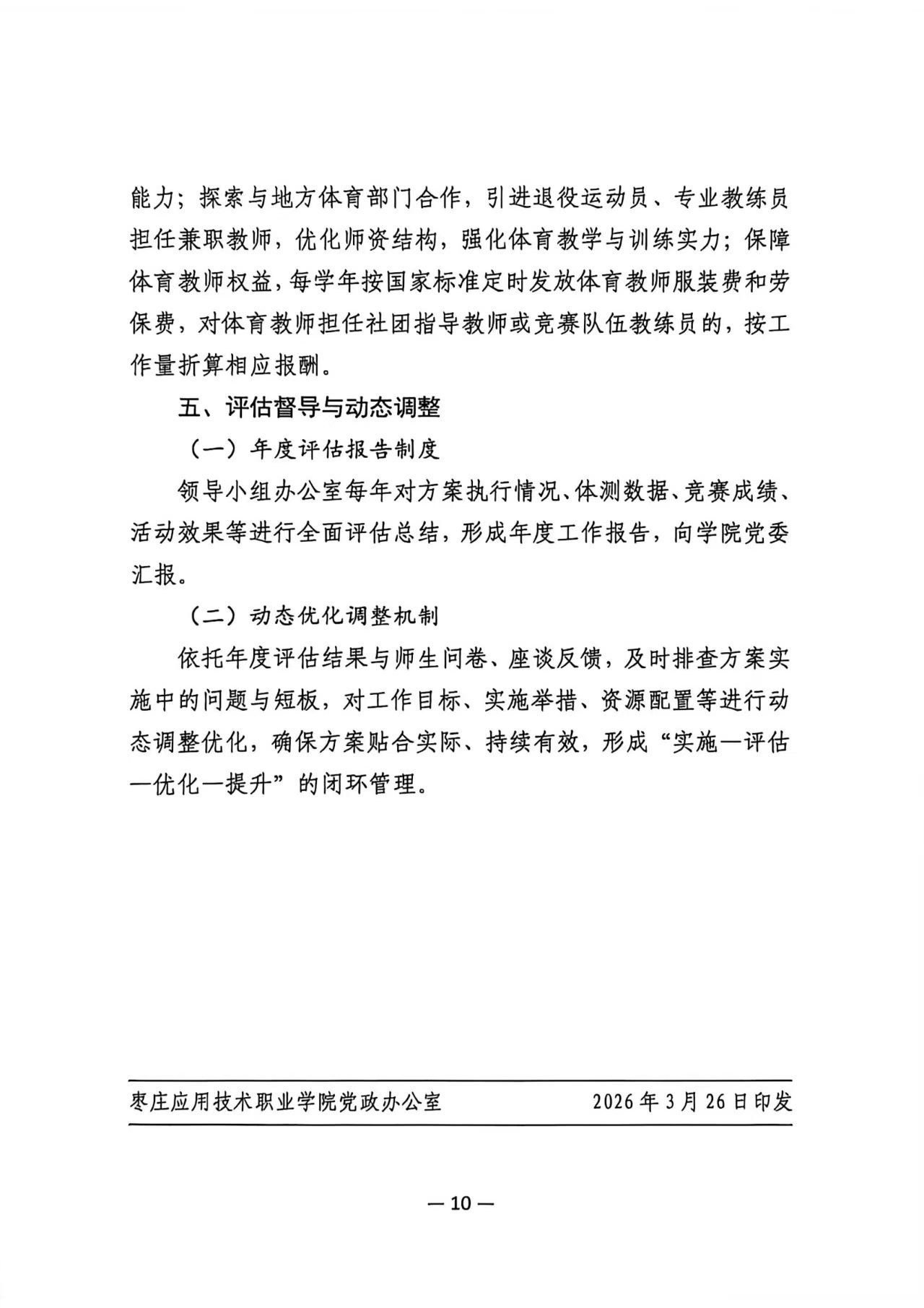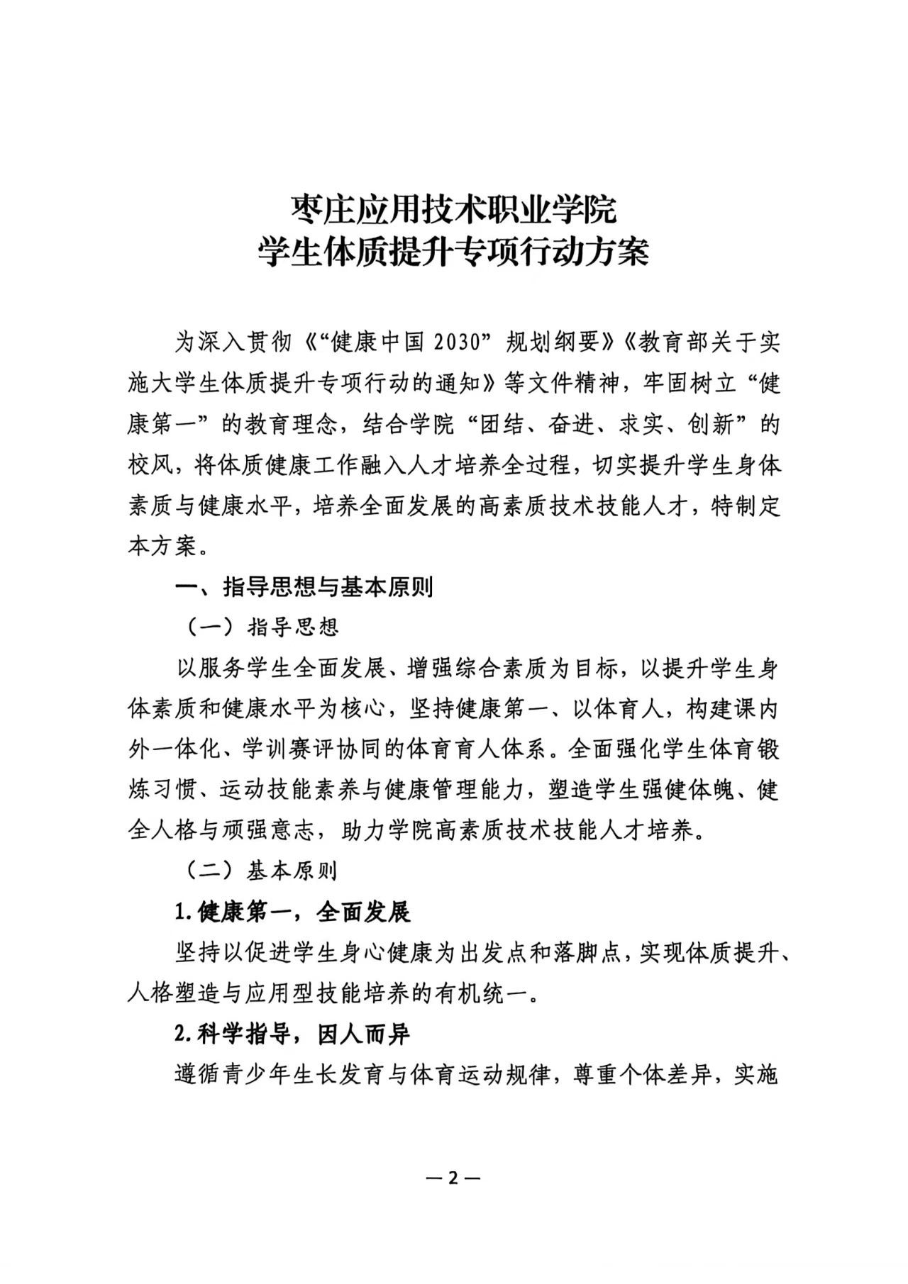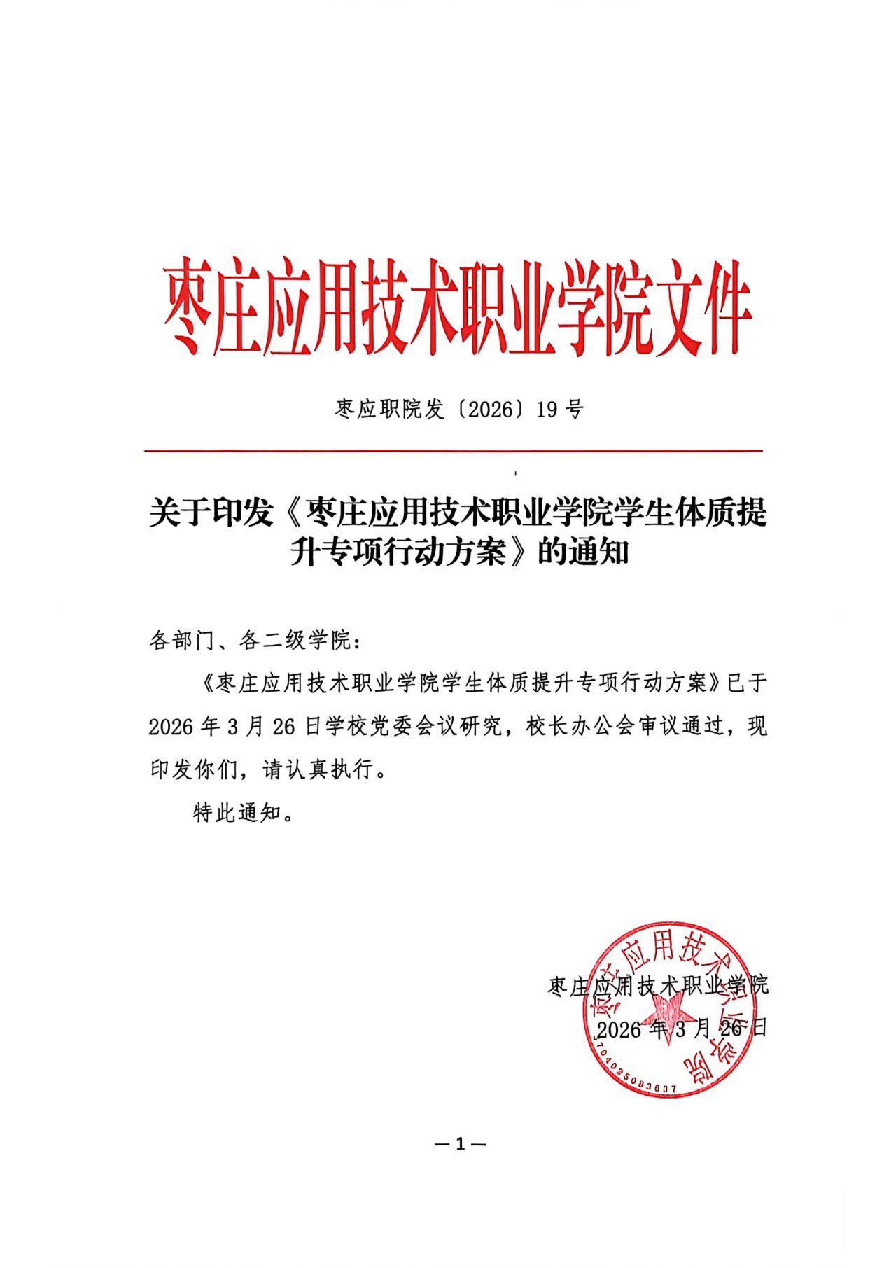 关于印发《枣庄应用技术职业学院学生体质提升专项行动方案》的通知